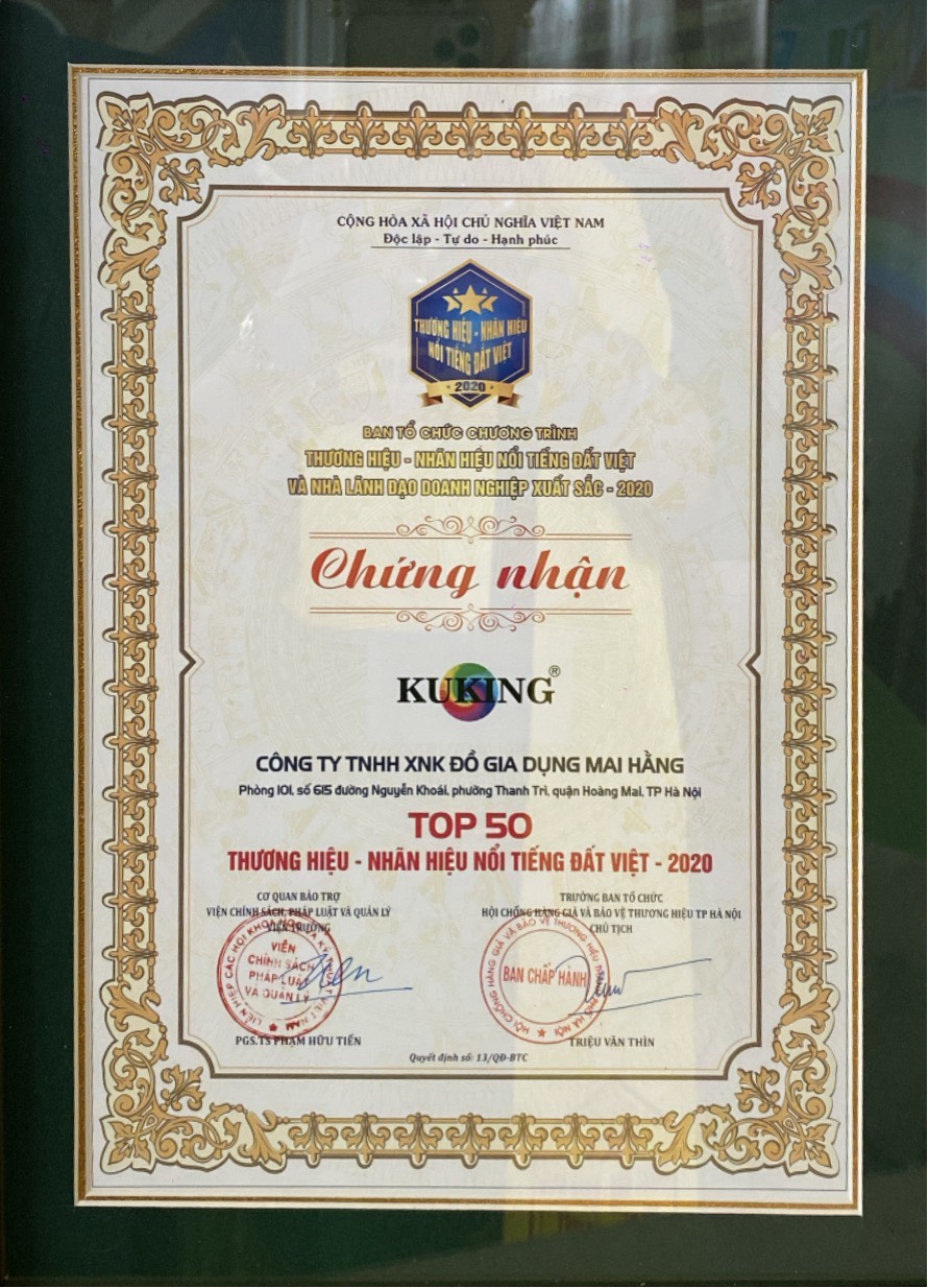 Thương hiệu KUKING lọt TOP 50 THƯƠNG HIỆU - NHÃN HIỆU NỔI TIẾNG ĐẤT VIỆT 2020